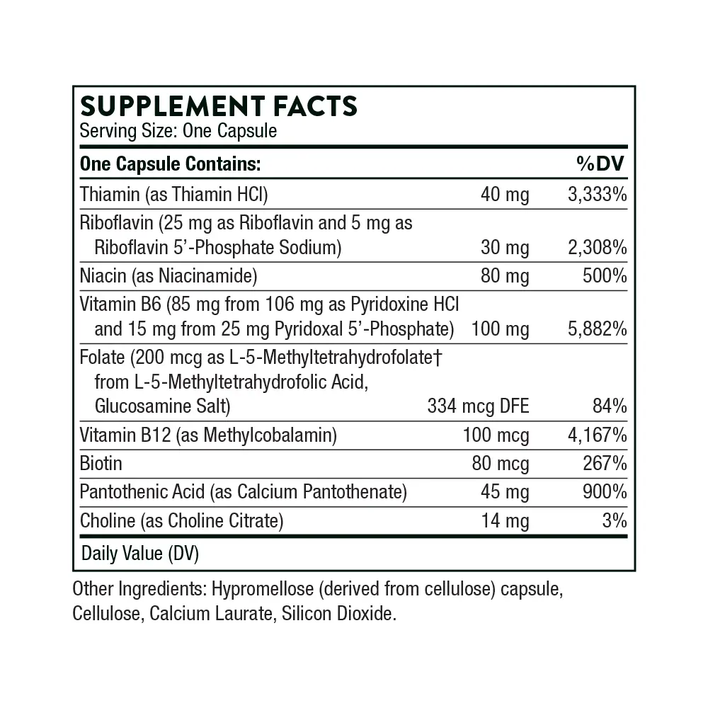 B-Complex #6 provides a balanced formula of B vitamins plus choline, with added vitamin B6 for functional support for women and athletes.*