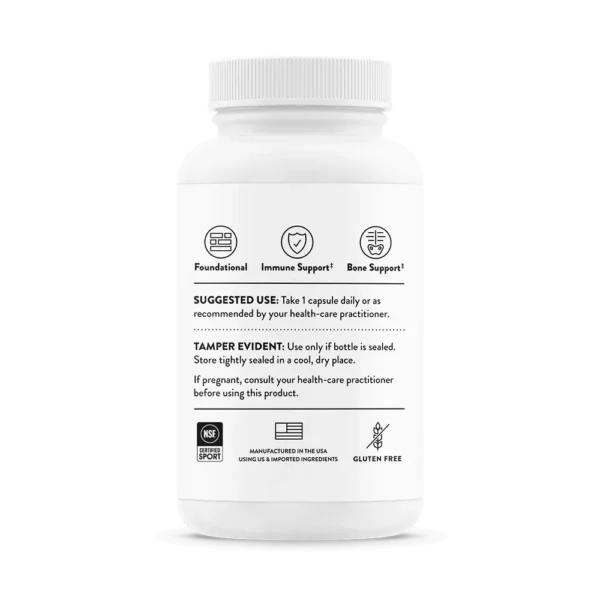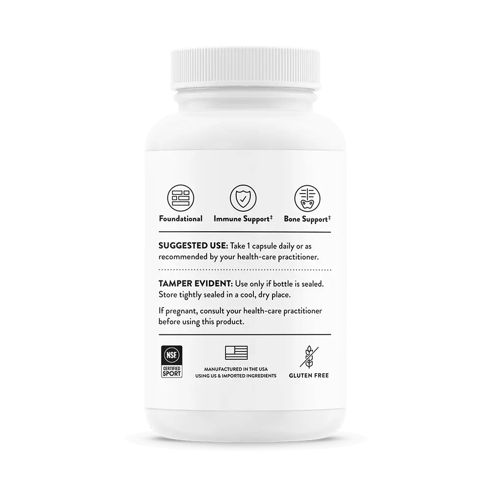 Vitamin D, in its D3 form, is more potent and better absorbed form than its D2 form. Thorne’s vitamin D supplements contain no lactose and no preservatives. NSF Certified for Sport®